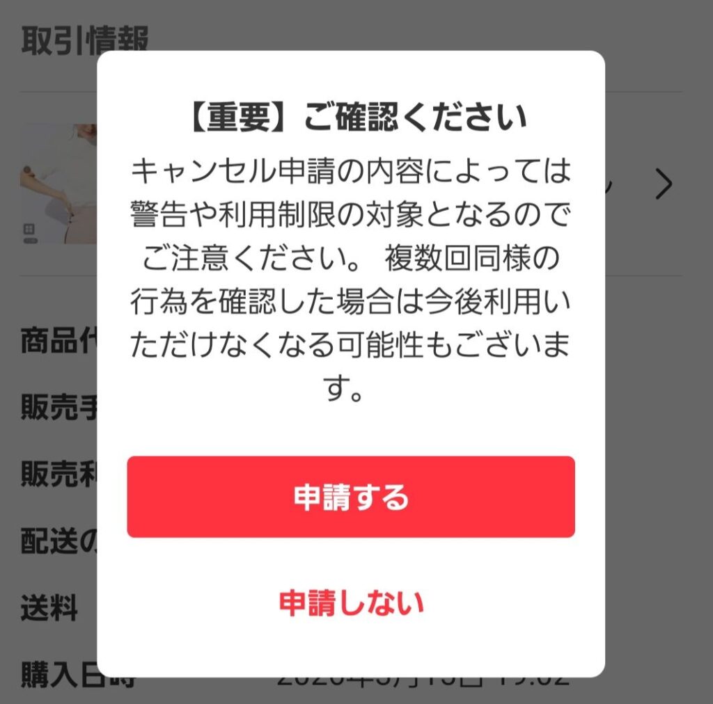 メルカリ事務局へキャンセル申請
