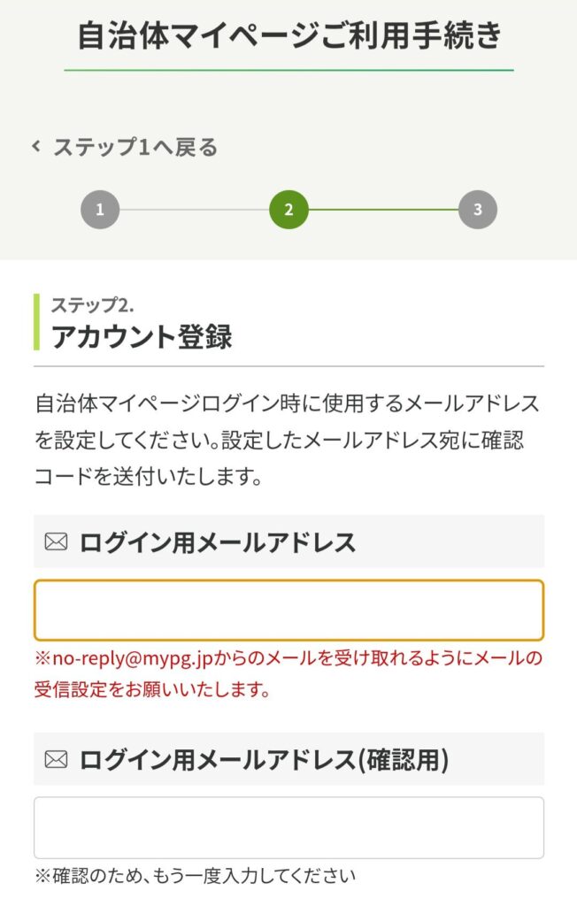 ➀自治体マイページにアクセスしアカウント登録・ログイン