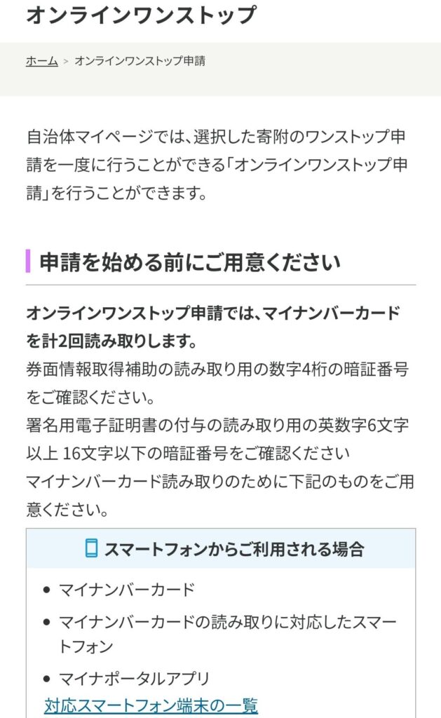 オンライン申請には、マイナンバーカードと、IC読み取り対応のスマートフォンが必要です。
