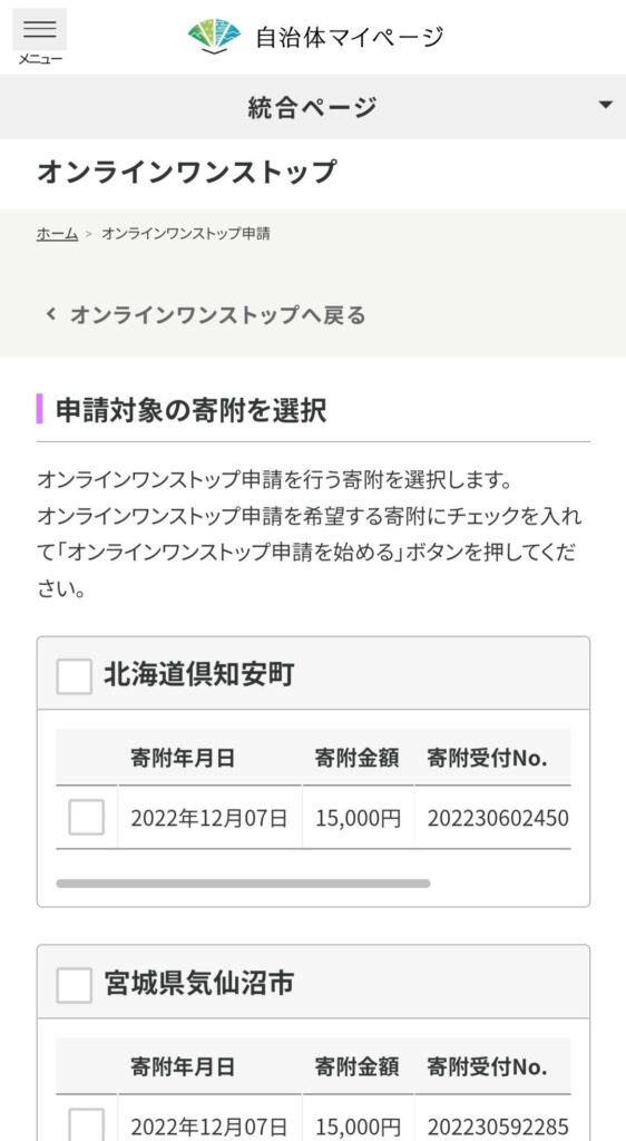 一方で、「自治体マイページ」「ふるまど」と申請サイトが分かれているため、注意が必要になります。
