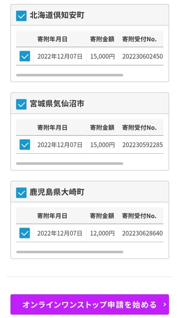 寄附先によって申請サイトが異なるため、申請サイトの違う複数自治体に寄附すると手間が増えます。