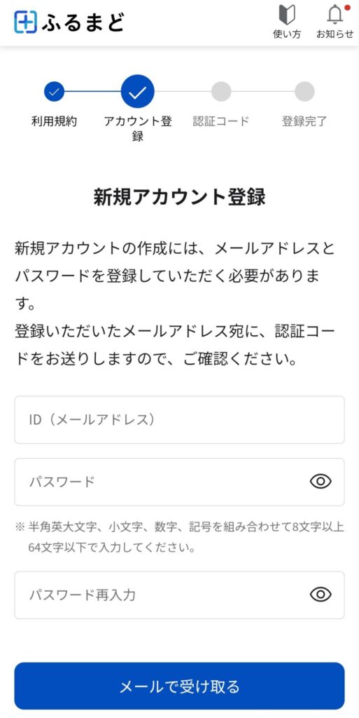 ➀ふるまどにアクセスしアカウント登録・ログイン