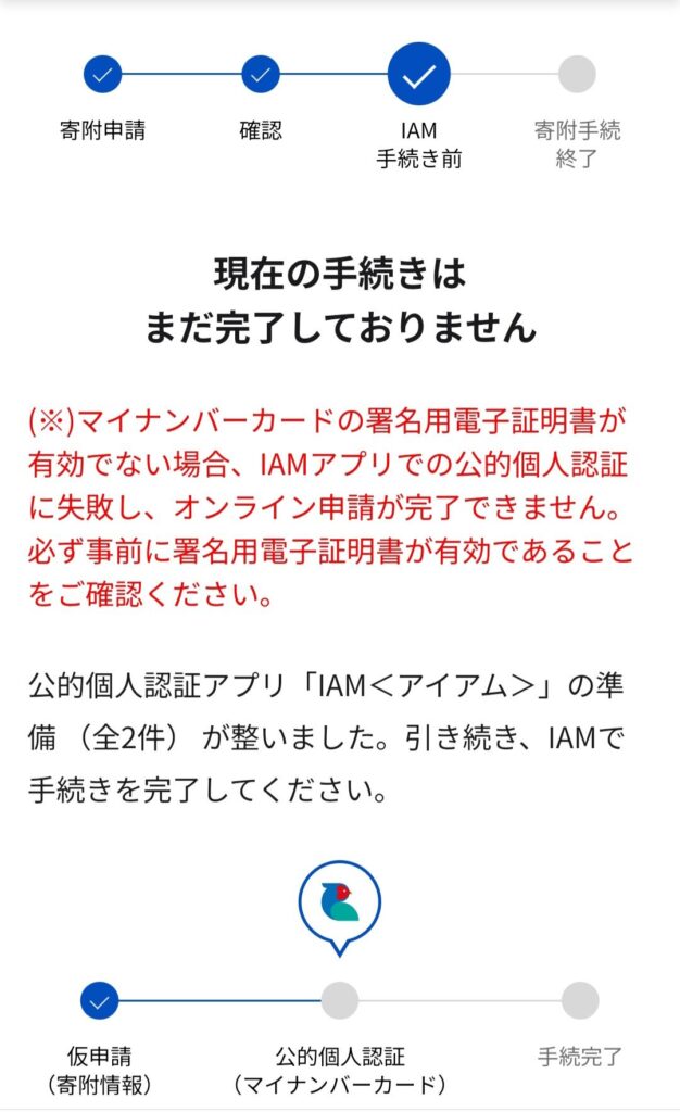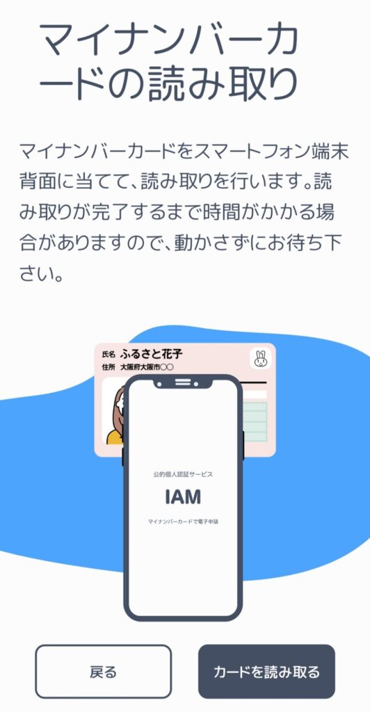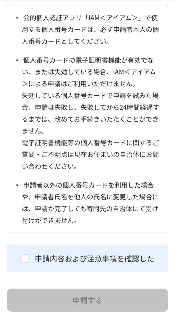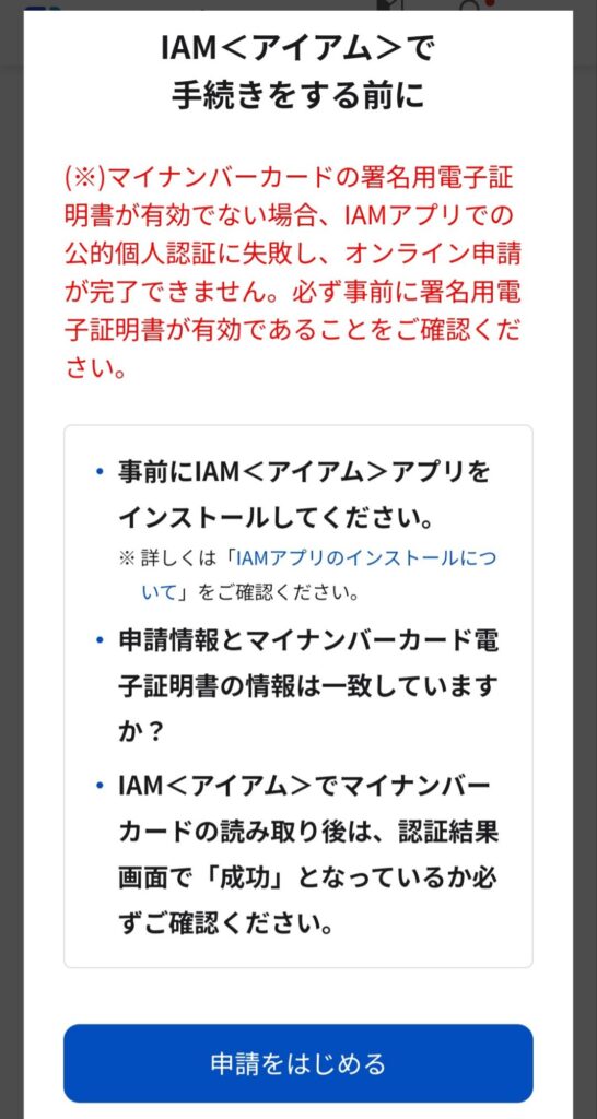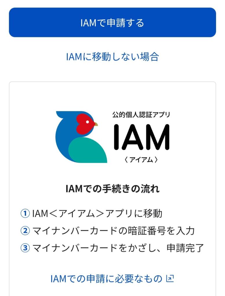 ③公的個人認証アプリ「IAM」を使用しマイナンバーカードで本人確認し申請完了