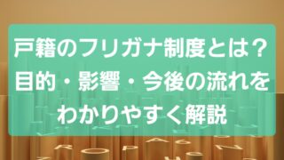 生活 戸籍のフリガナ制度とは?目的・影響・今後の流れをわかりやすく解説 戸籍法改正で「氏名のフリガナ」が新たに追加 令和5年6月2日、「行政手続における特定の個人を識別するための番号の利用等に関する法律等の一部を改正する法律(令和5年法律第48号)」が成立し、同月9日に公布されました。 この中には... 2025.10.27 生活